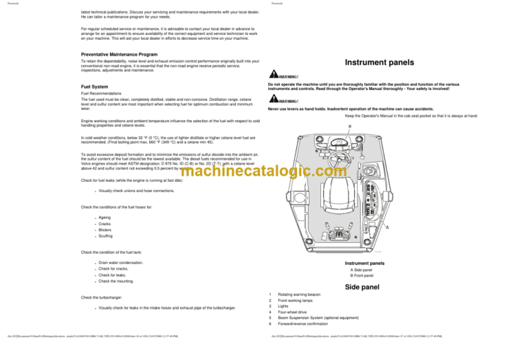 Volvo BL70, BL71, BL71 Plus Backhoe Loader Operators Manual