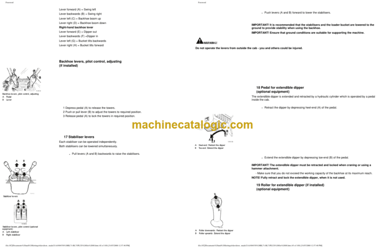 Operating with the backhoe 104