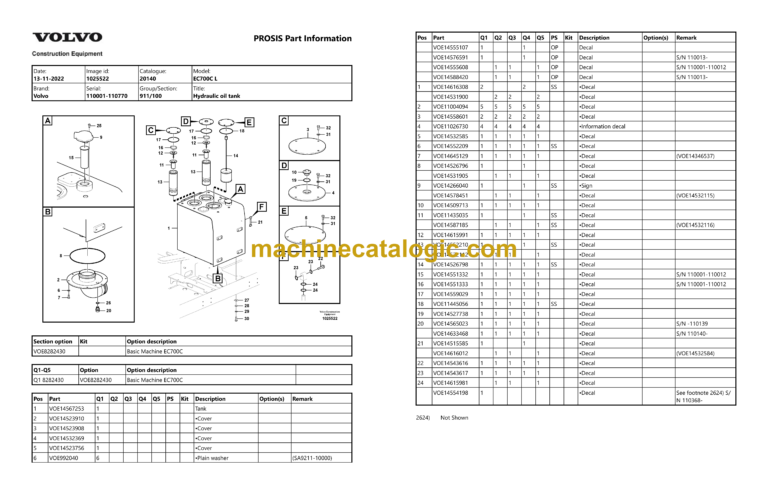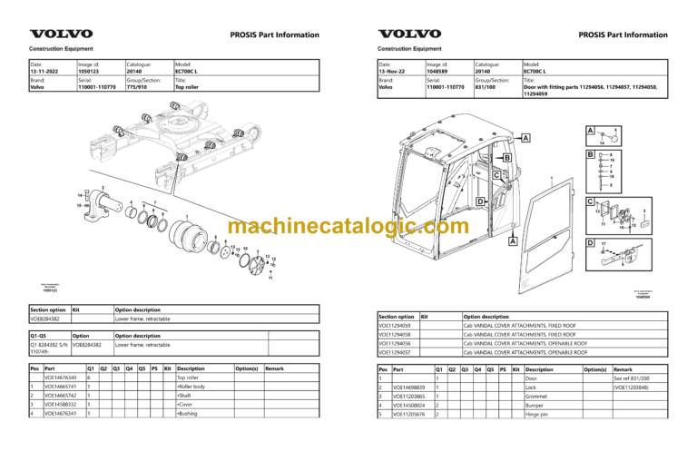 Volvo EC700CL Hydraulic Crawler Excavator Parts Manual