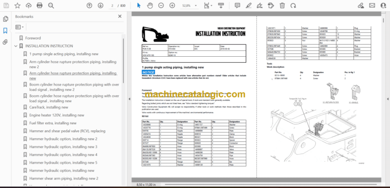 Boom cylinder hose rupture protection piping with over load signal , installing new 2