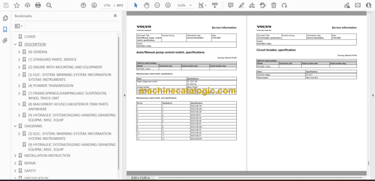 Volvo ECR145DL Hydraulic Crawler Excavator Pdf Index: