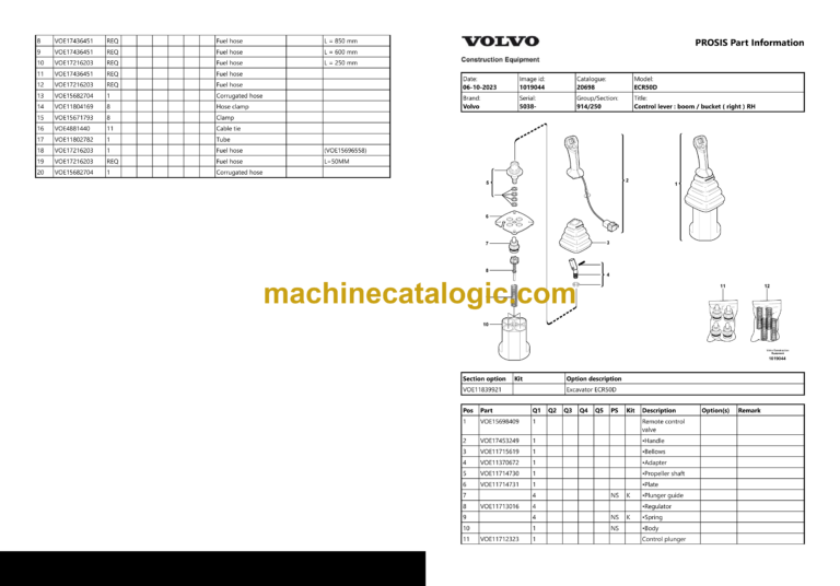 914 250 Control lever boom bucket ( right ) RH