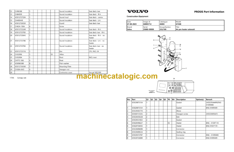 Volvo G726B Motor Grader Parts Catalog
