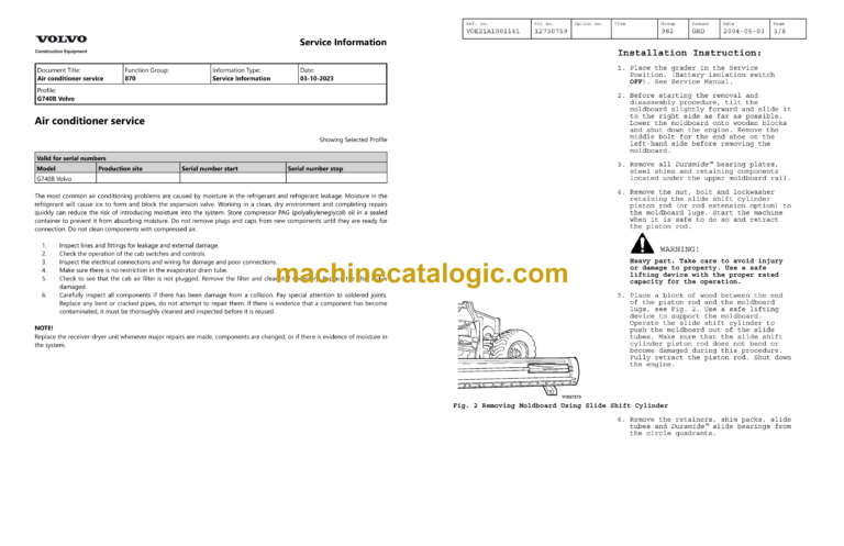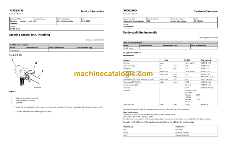 Volvo G740B Motor Grader Service and Repair Manual