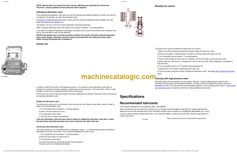 Hydraulic system, specifications L110F 215