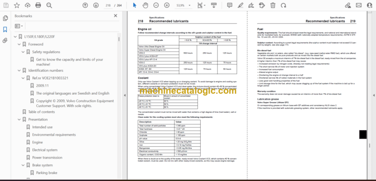 Volvo L150F, L180F, L220F Wheel Loader Operator’s Manual