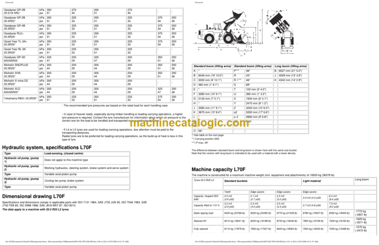 Hydraulic system, specifications L70F 218
