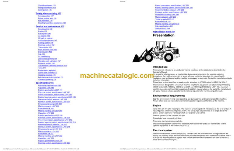 Electrical system, specifications L70F 209