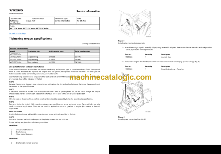 Volvo MCT125C Skid Steer Loader Service & Repair Manual