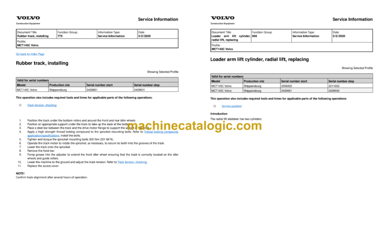 Volvo MCT145C Skid Steer Loader Service & Repair Manual