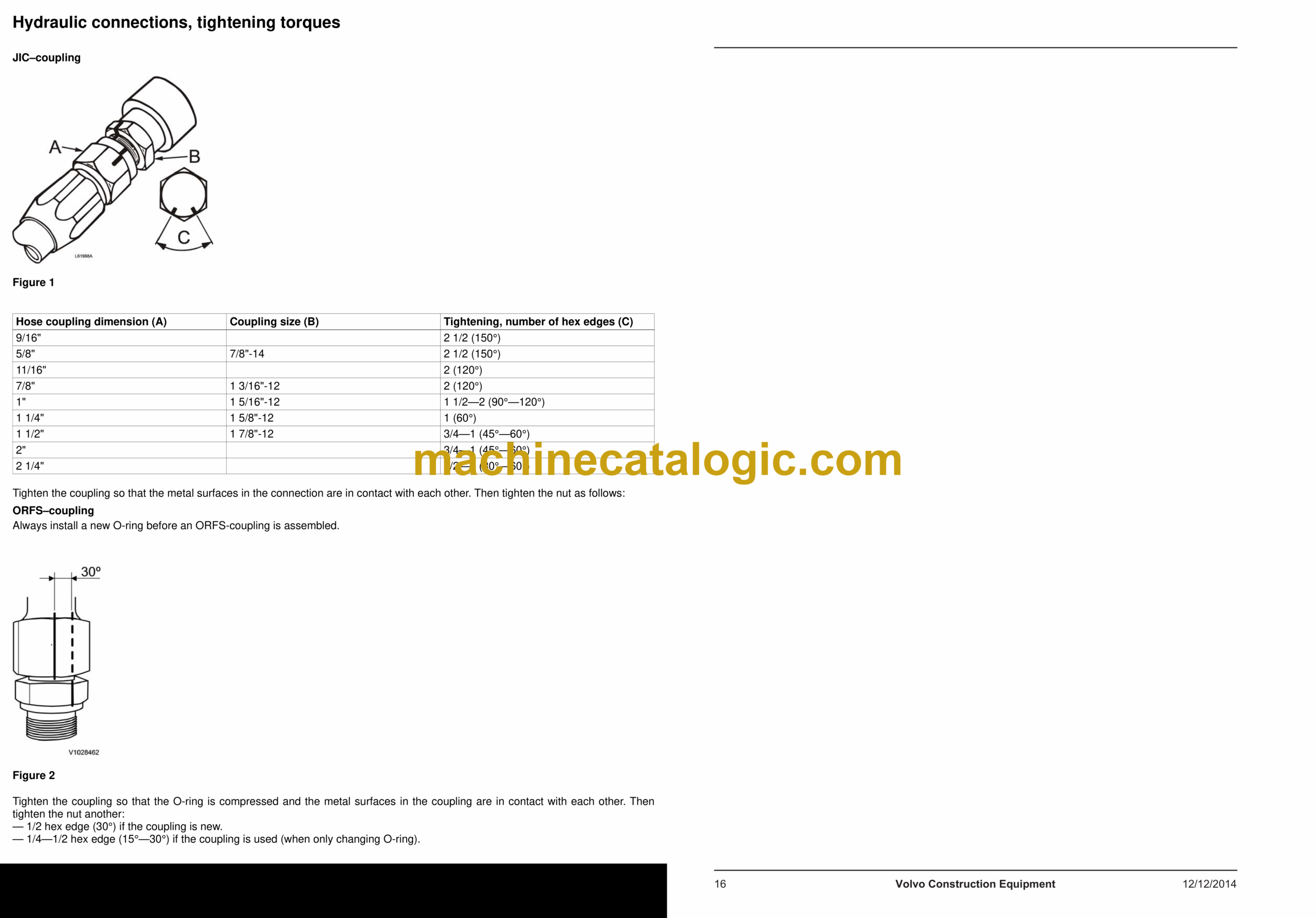 Hydraulic connections, tightening torques1
