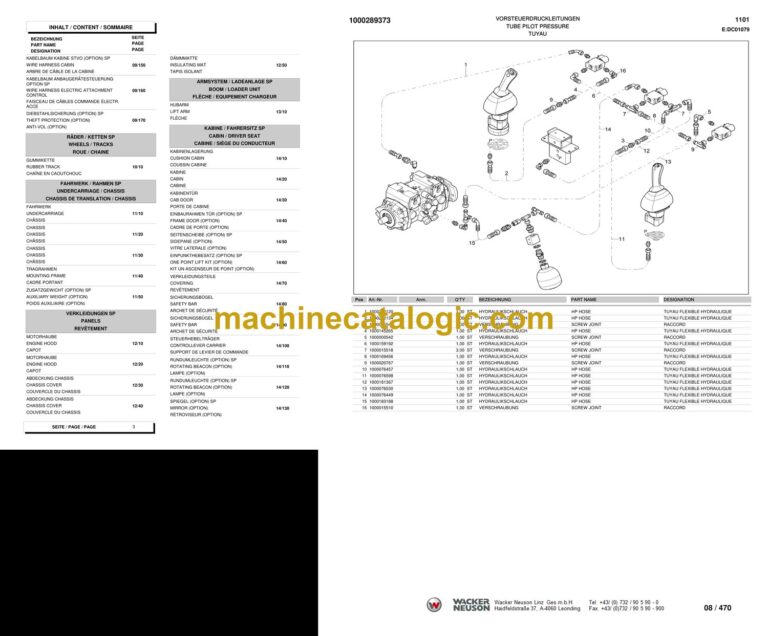 Wacker Neuson 1101C, 1101CP Skid Steer Loader Index: