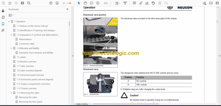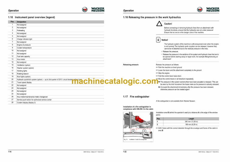 1.16 Releasing the pressure in the work hydraulics