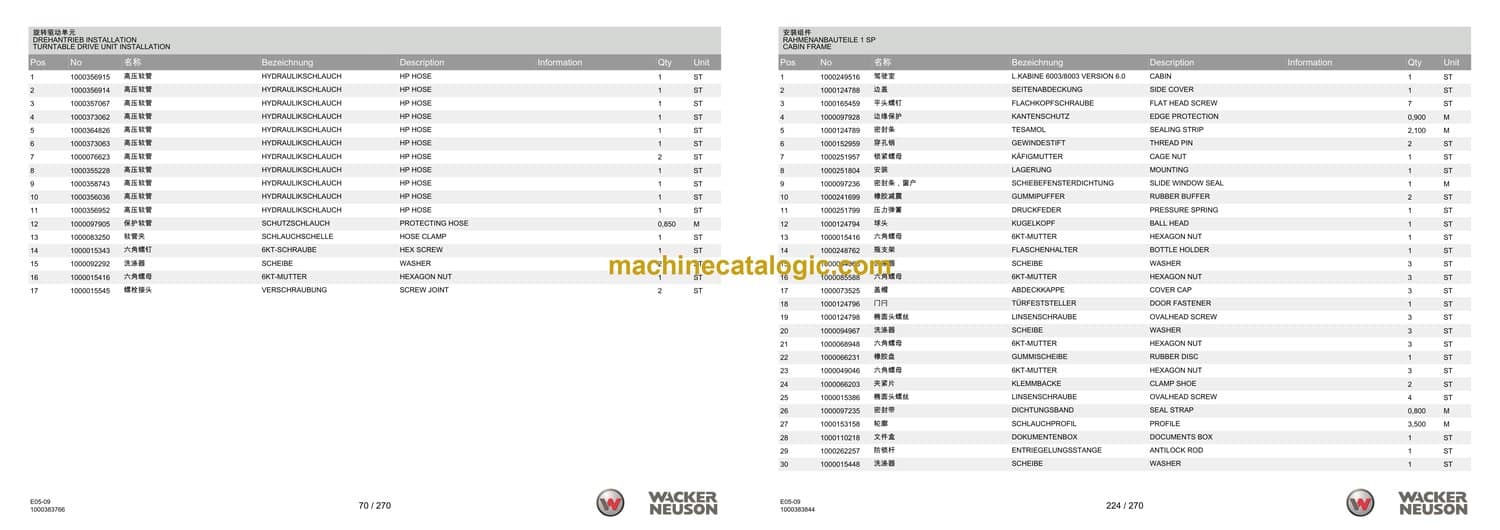 Wacker Neuson 6003 CN Crawler Excavator Parts Manual