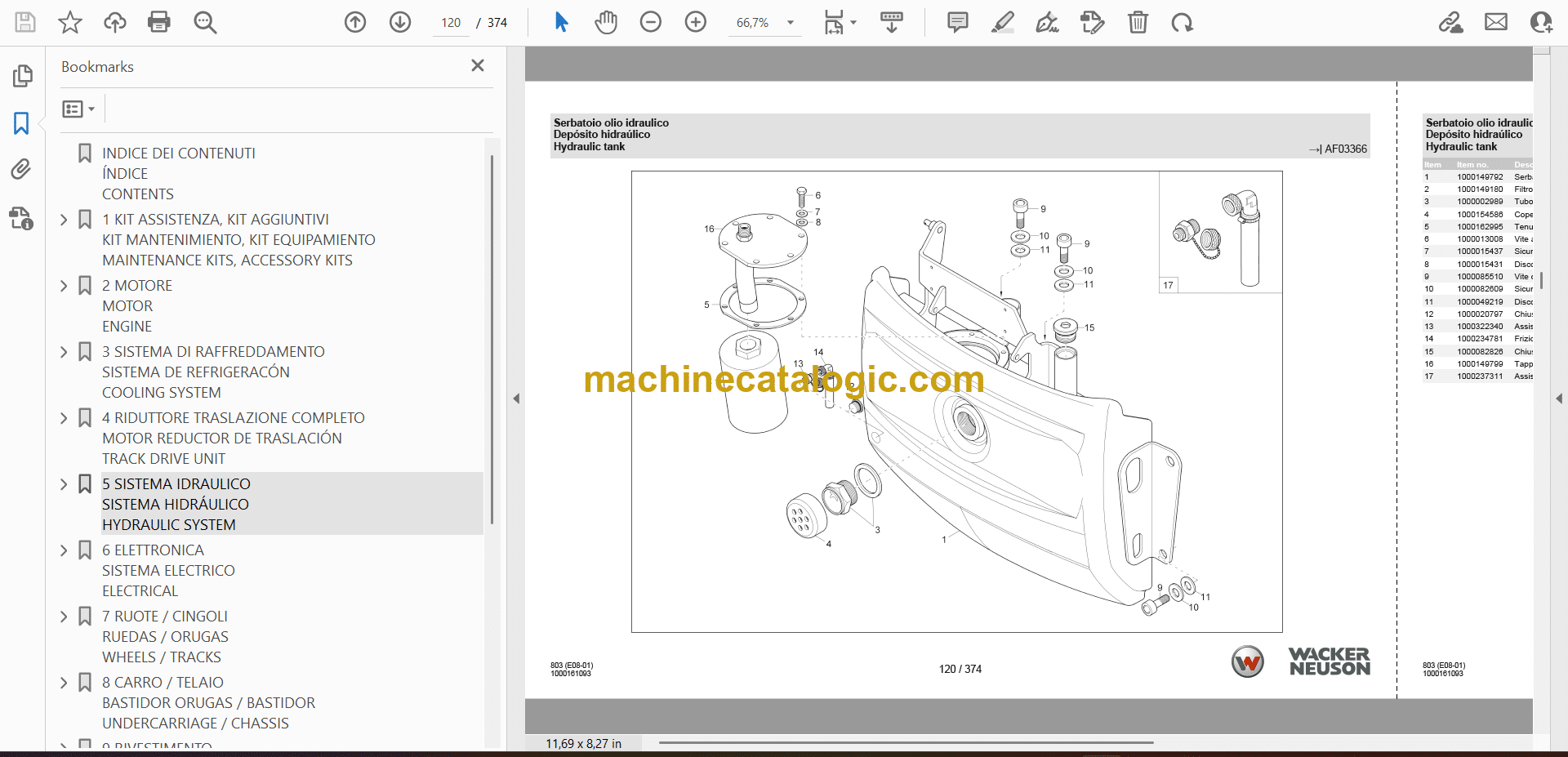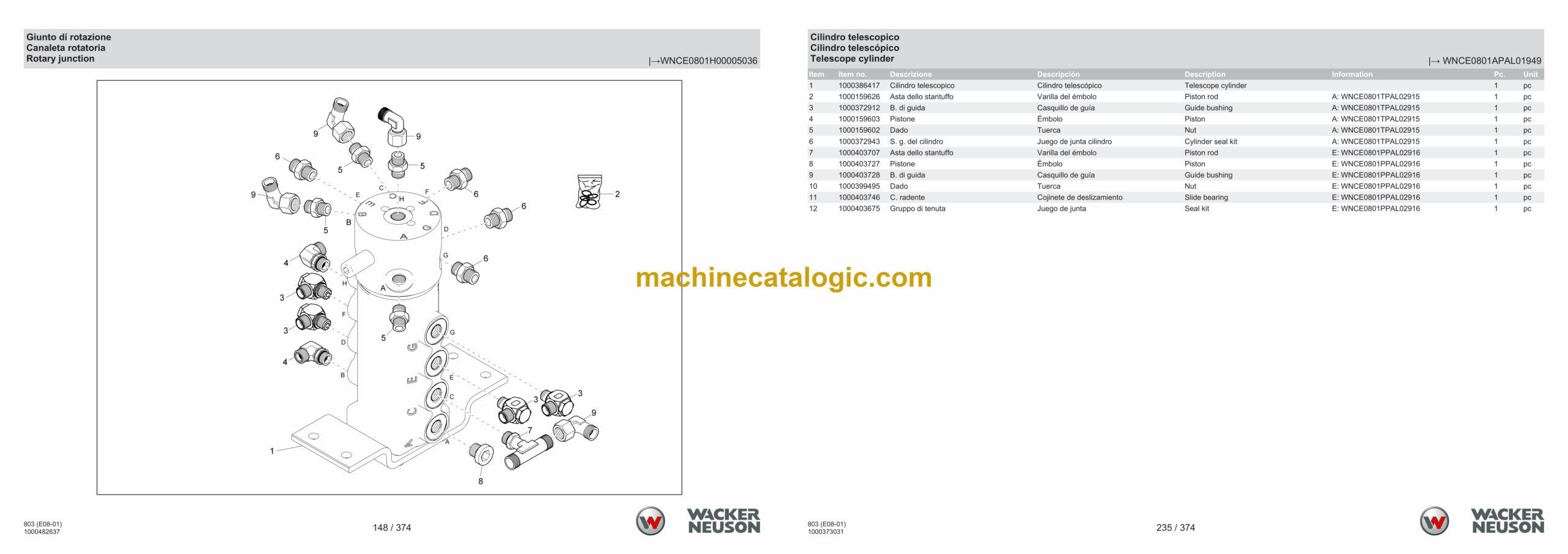 Wacker Neuson 803 Tracked Excavator Parts Manual