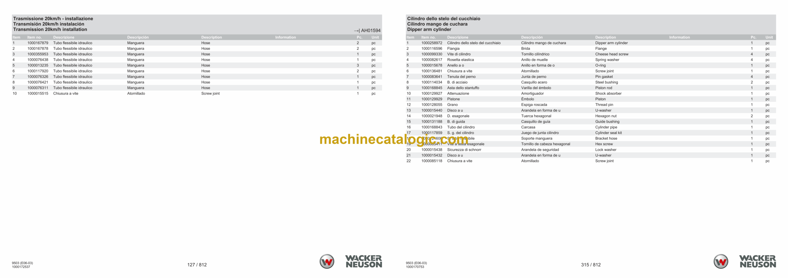 Wacker Neuson 9503 Wheeled Excavator Index: