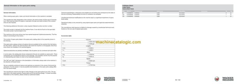 Wacker Neuson BPS1340A Vibratory Plate Parts Manual