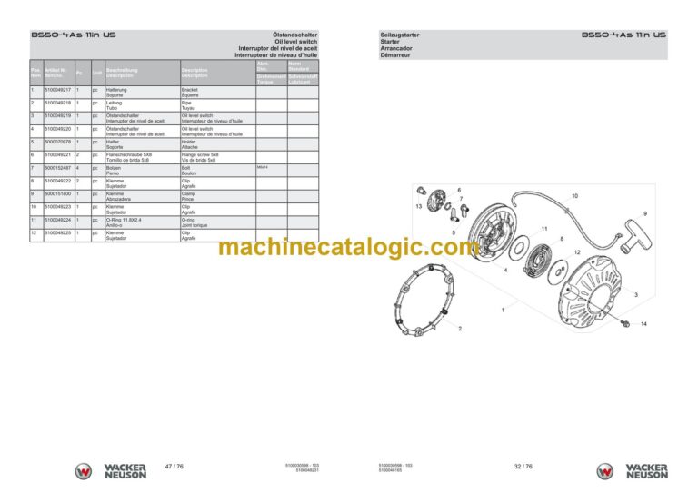 Wacker Neuson BS50-4As 11in US Vibratory Rammers Parts Manual