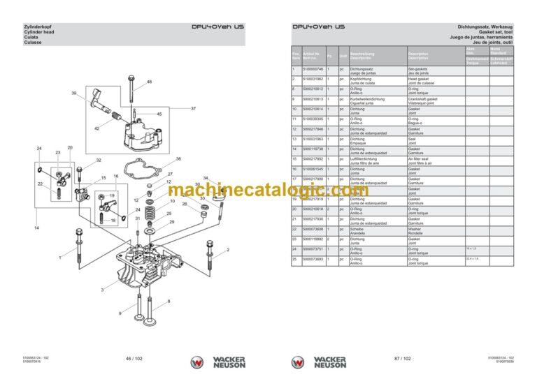 Wacker Neuson DPU40Yeh US Vibratory Plate Parts Manual