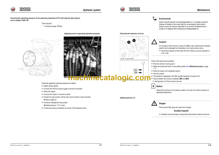 Checking the operating pressure of the operating hydraulics DT12 with high-tip skip (option) (up to number FA02119)