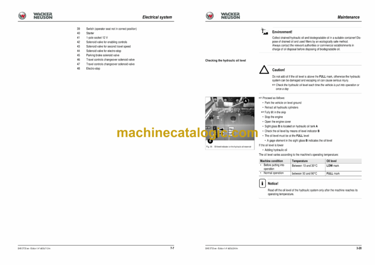 Checking the hydraulic oil level
