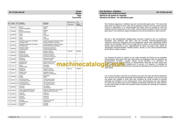 Wacker Neuson EH 75-230 28×160 Brakers Parts Manual