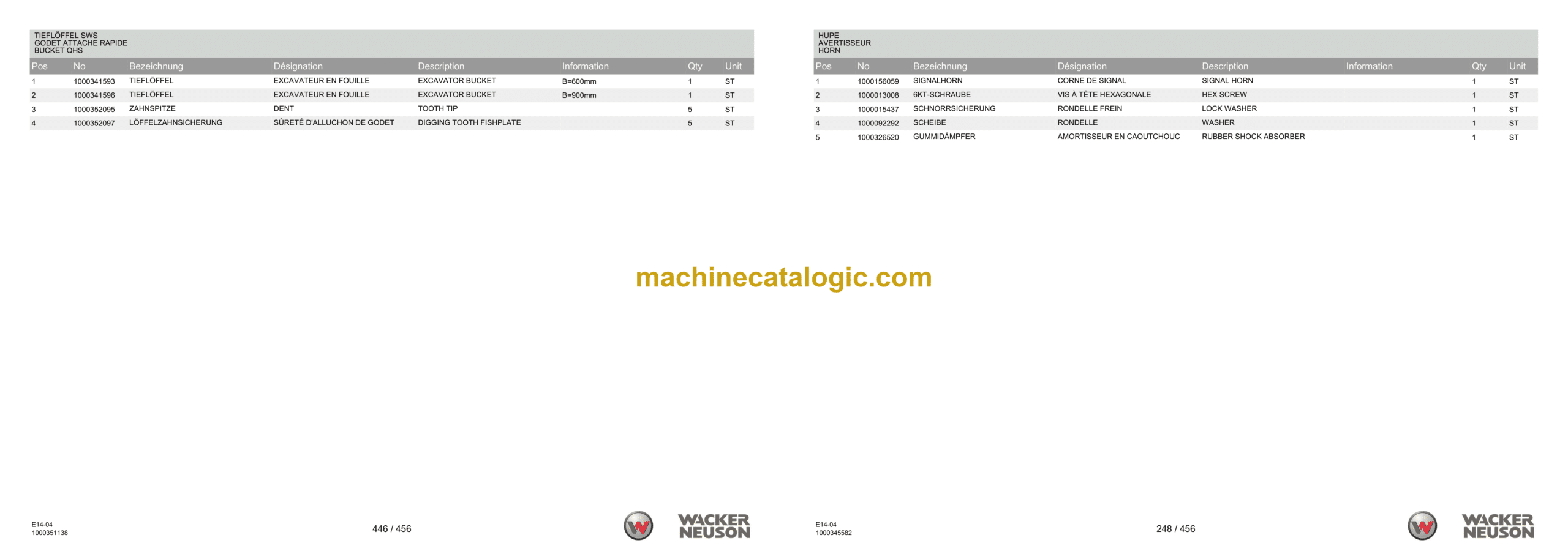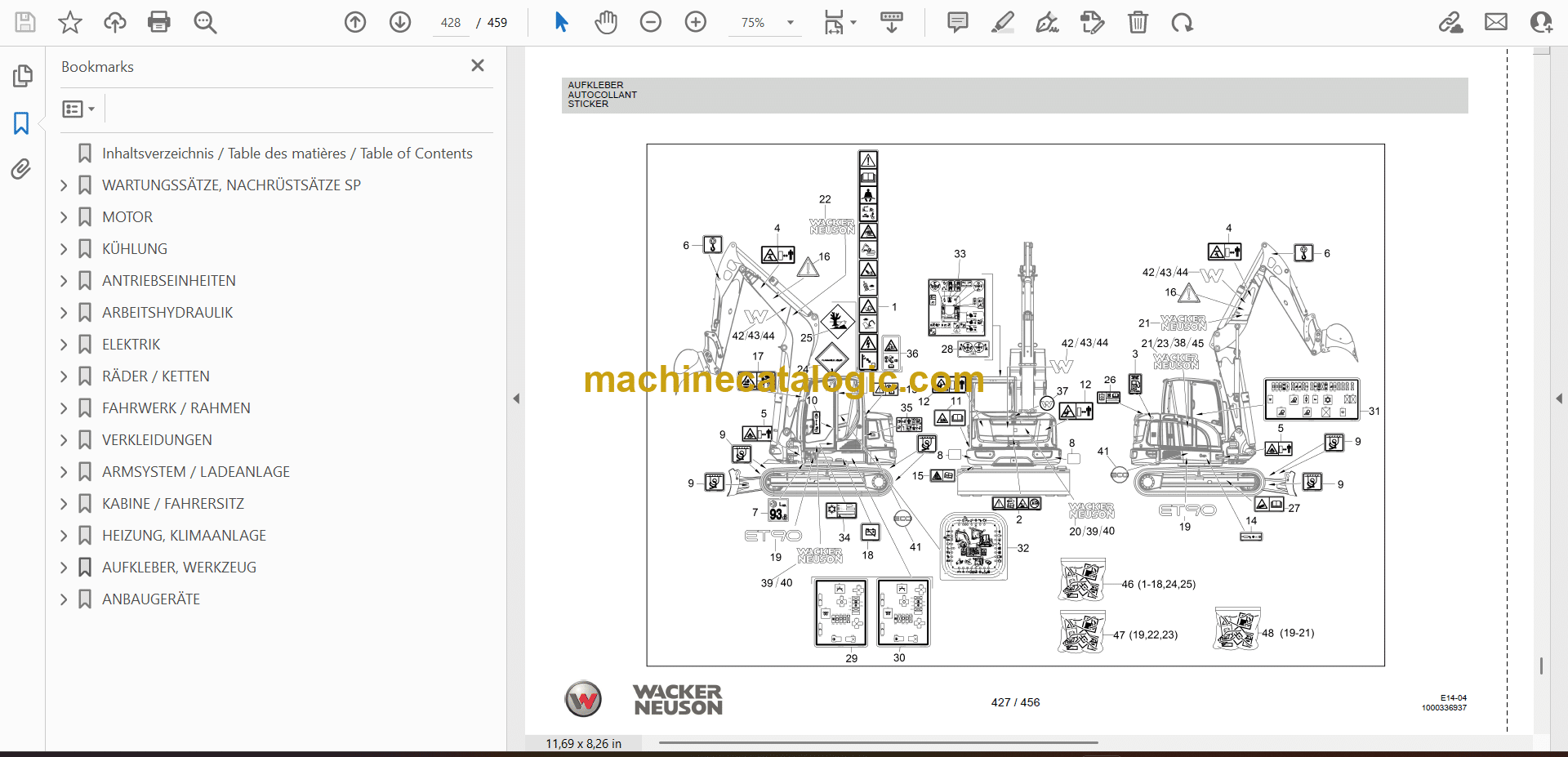 Wacker Neuson ET90 Crawler Excavator Parts Manual