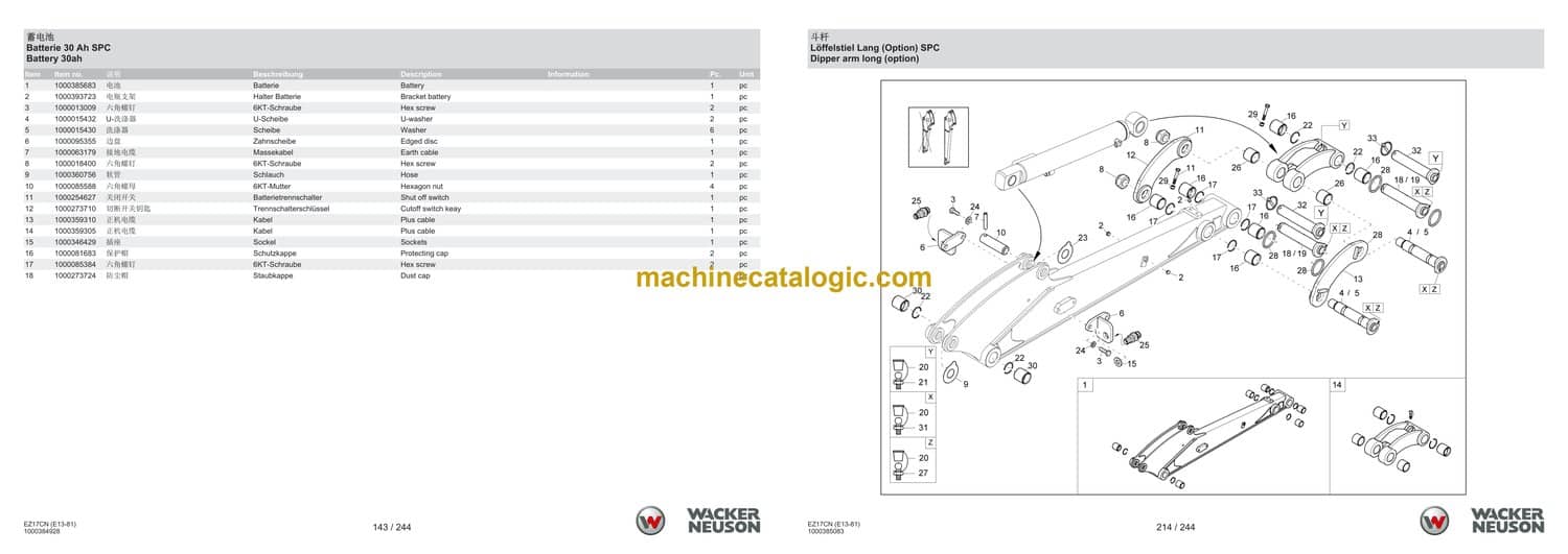 Wacker Neuson EZ17CN Tracked Excavator Parts Manual