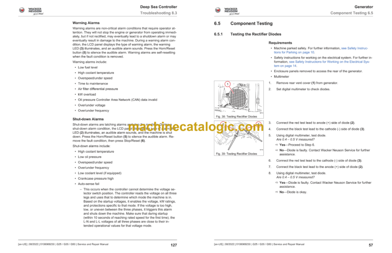 Wacker Neuson G25, G35, G50 Mobile Generator Service and Repair Manual