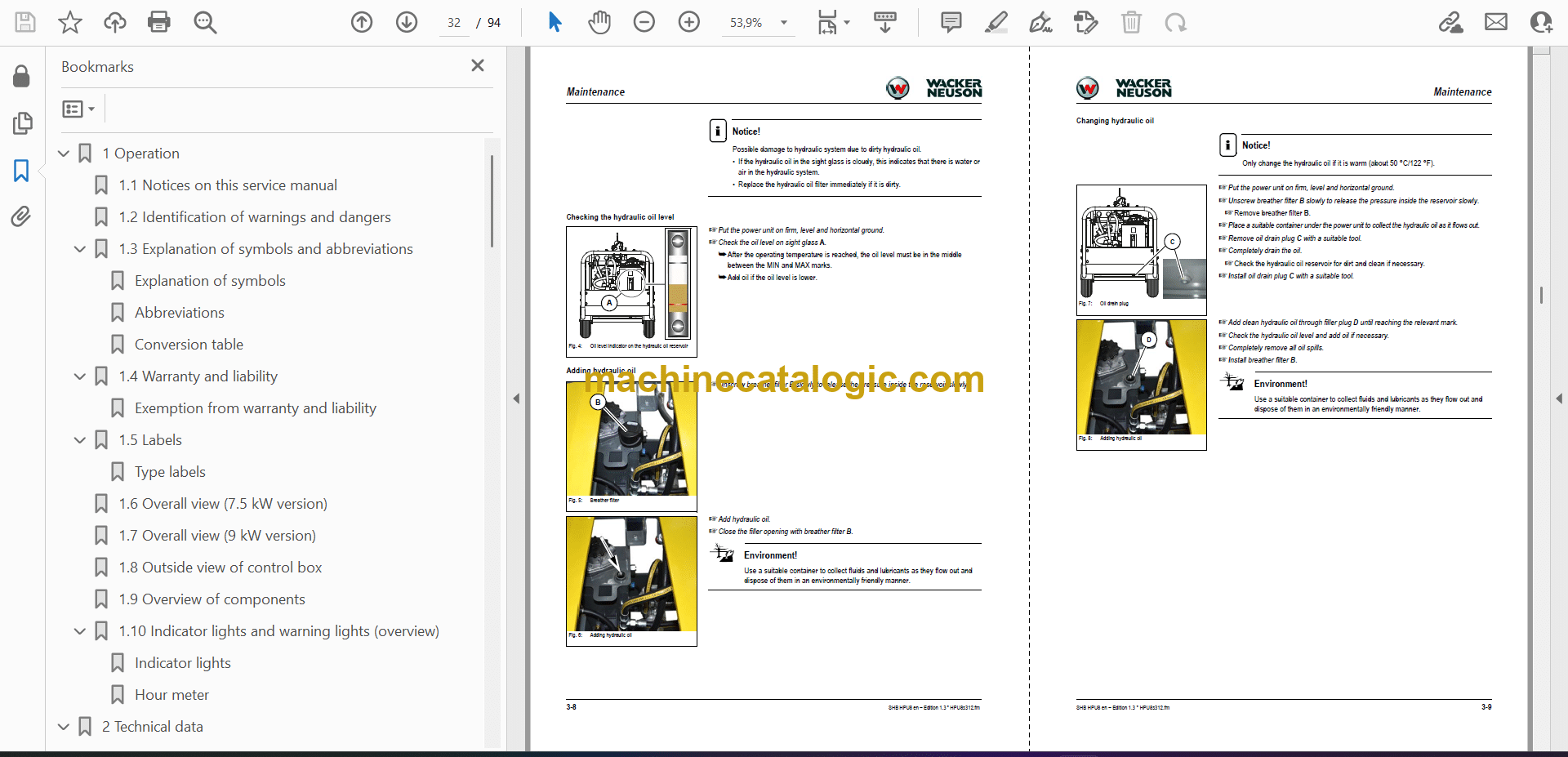 Important information on the hydraulic system