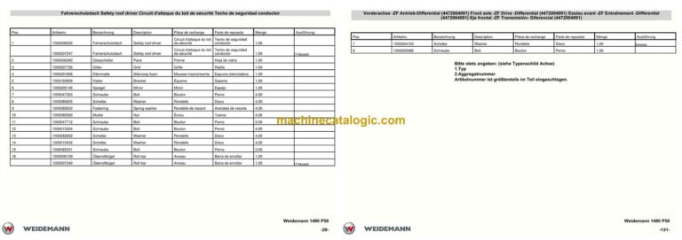 Inhalt Ersatzteilliste 1490 P50 / Content Spare parts list 1490 P50 / Contenu Liste de pièces de rechange 1490 P50 / Conten. Lista piezas recambio 1490 P50