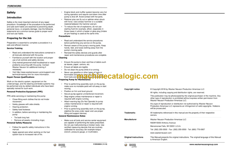 Wacker Neuson PT2, PT3, PT4 Trash Pump Service Manual