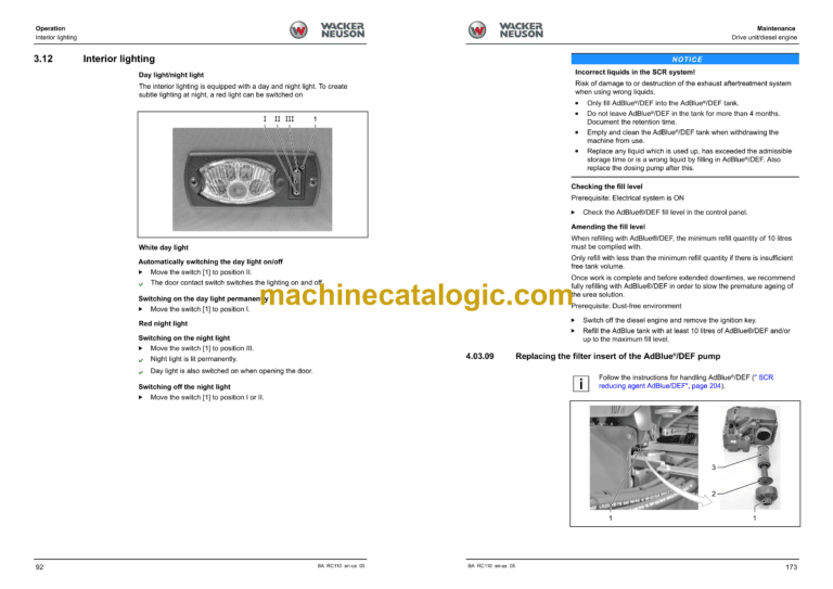3.14 Switching the work light/hazard warning light/rotating beacon on/off