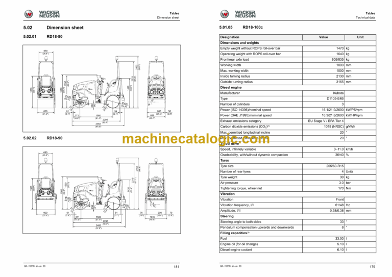 Wacker Neuson RD18 Tandem Roller, Combination Roller Instruction Manual