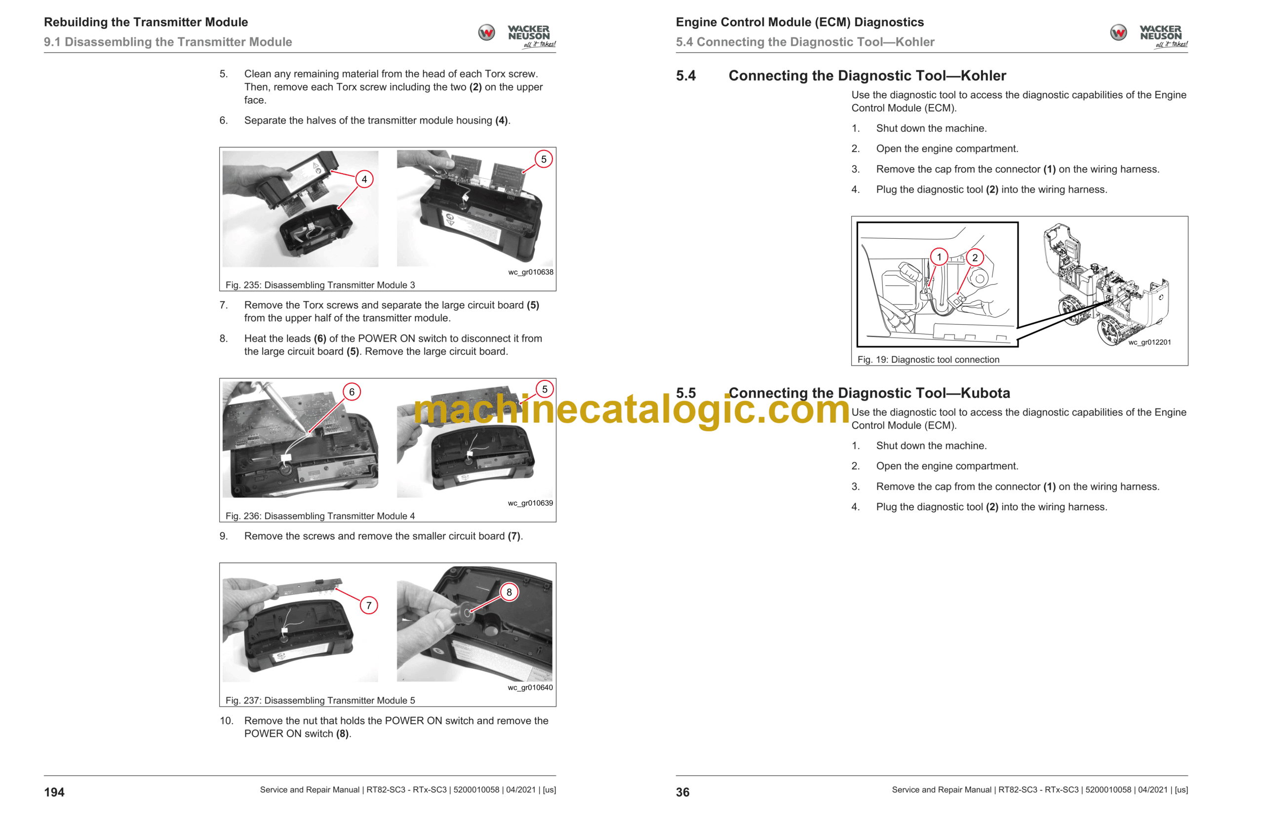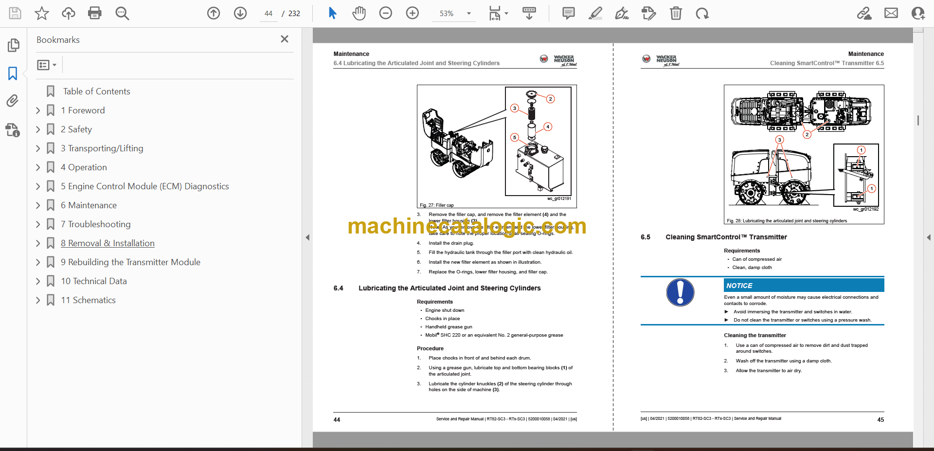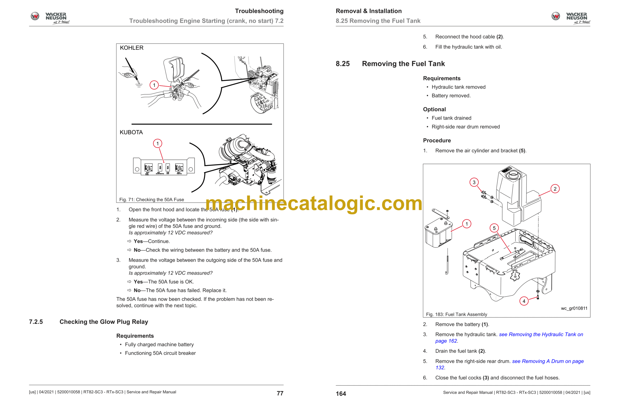 Model: RT82-SC3, RTx-SC3 Trench Roller Service and