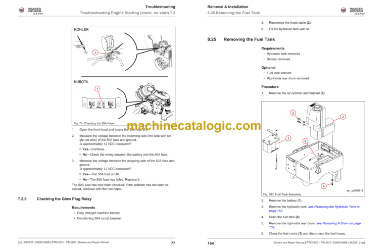 Wacker Neuson RT82-SC3, RTx-SC3 Trench Roller Service and Repair Manual