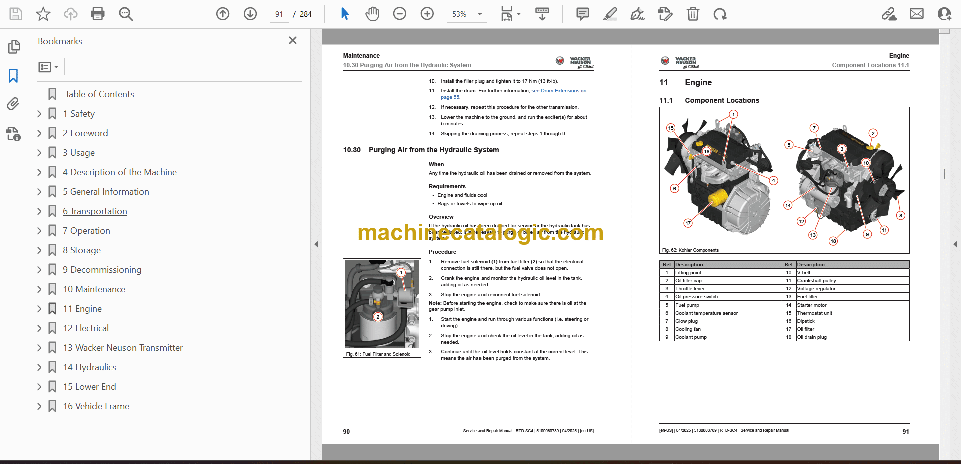 10.30 Purging Air from the Hydraulic System