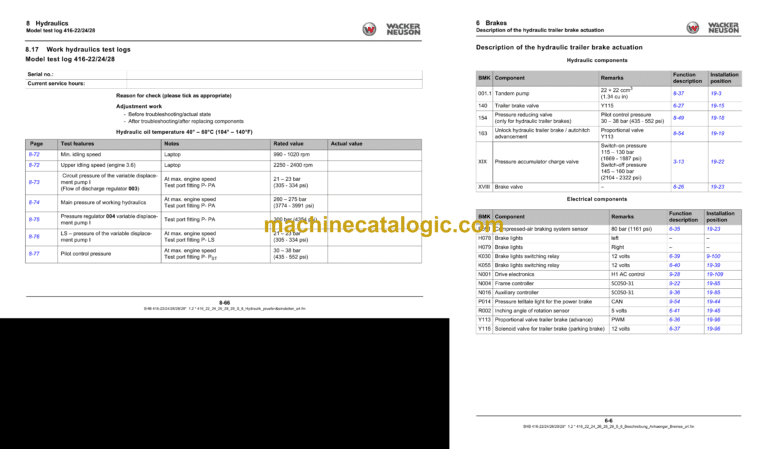 8.14 Control of the leveling, tipper, hitch model 416-26, 416-29