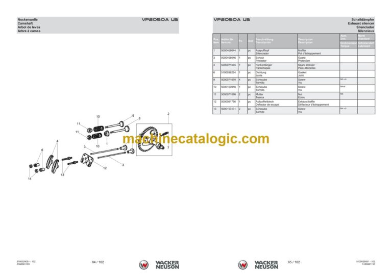 Wacker Neuson VP2050A US Vibratory Plate Parts Manual