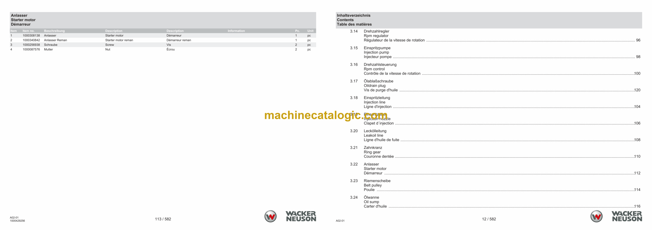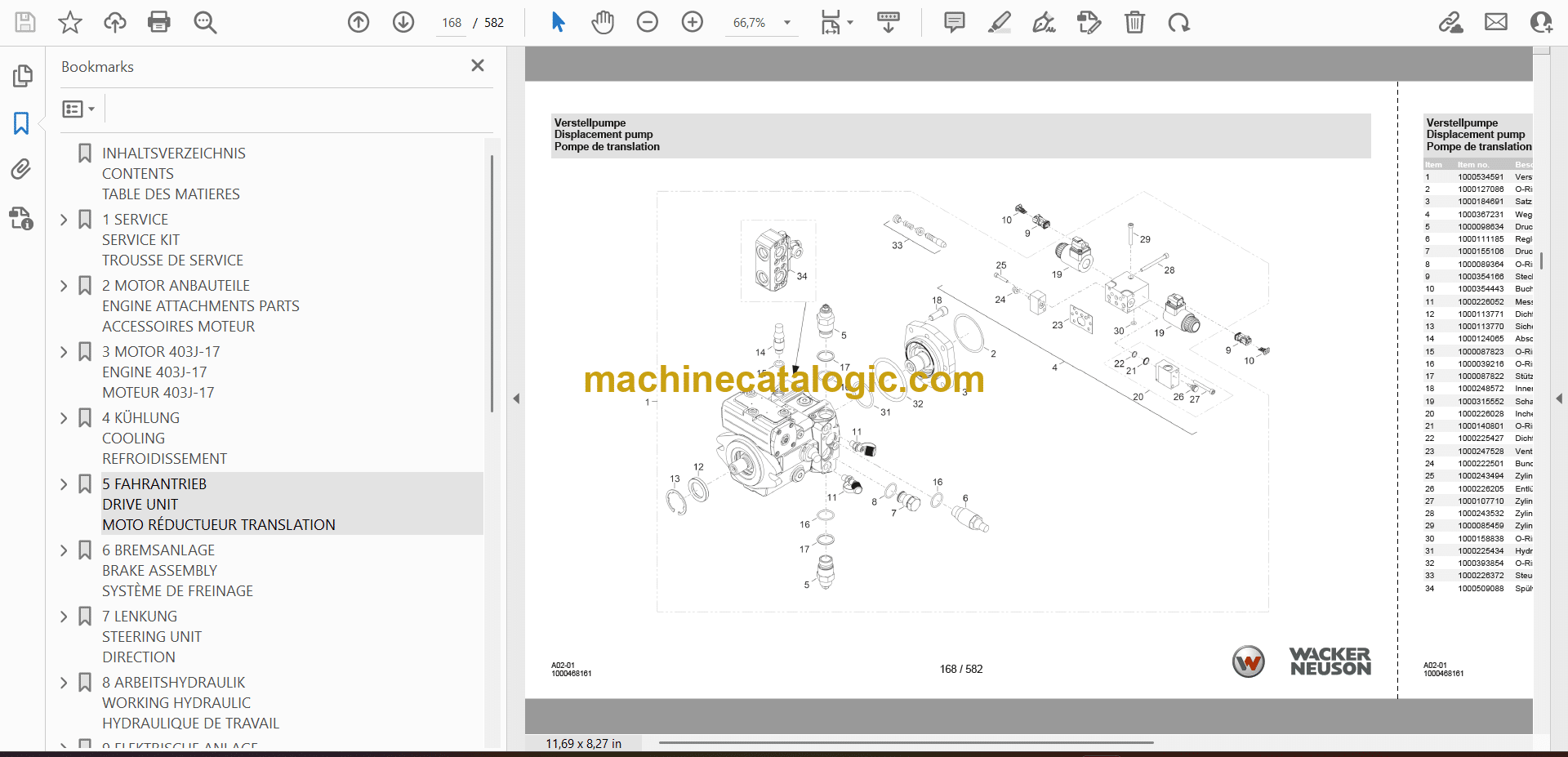 Wacker Neuson WL250 Wheel Loader Parts Manual