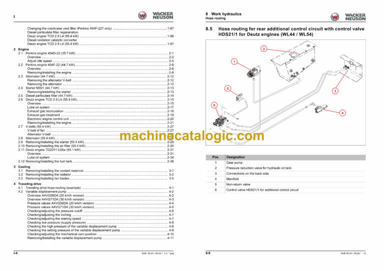 8.5 Hose routing for rear additional control circuit with control valve HDS21/1 for Deutz engines (WL44 / WL54)