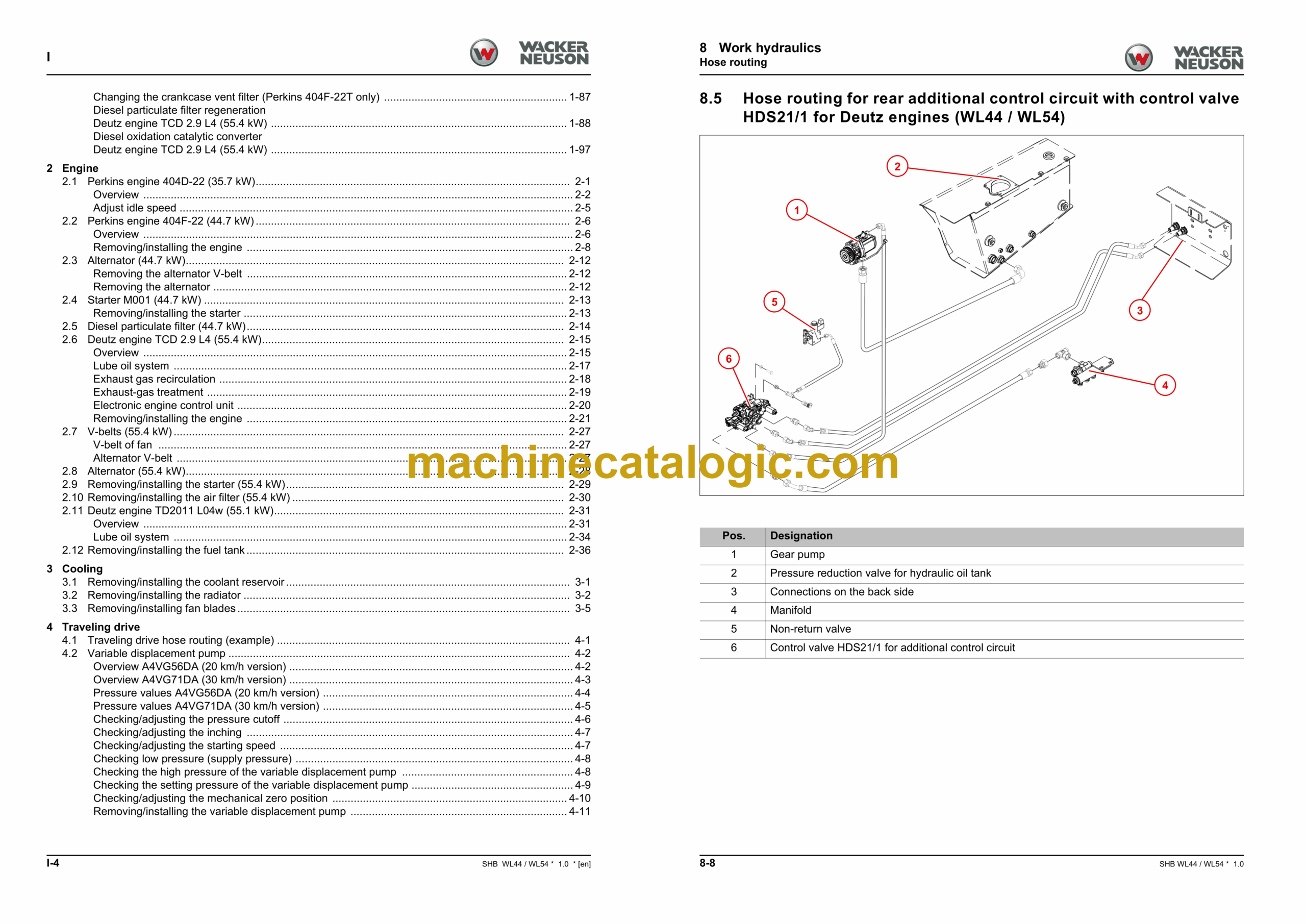 8.23 Hydraulics diagram for wheel loaders WL44 – HDM19/4 with HDS21/1 or 6/2 directional valve