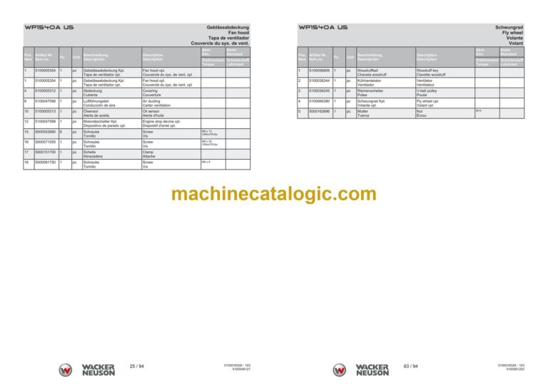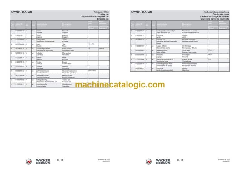 Wacker Neuson WP1540A US Vibratory Plate Parts Manual