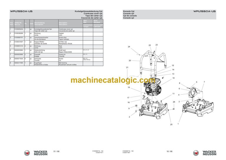 Wacker Neuson WPU1550A US Vibratory Plates Parts Manual