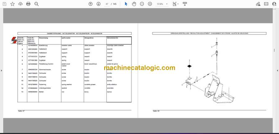 This Weidemann 1015 D/P wheel loader parts catalog is what I’d keep open on the bench while the machine’s working around barns, yards, or tight construction sites doing loading and cleanup. It helps you trace every component on the loader, from filters to linkages, so you can match what’s on the machine with the correct replacement parts. If, for example, you’re chasing a fuel delivery issue and find a tired filter housing or mismatched filter element, this catalog lets you confirm the exact assembly breakdown before you order anything.