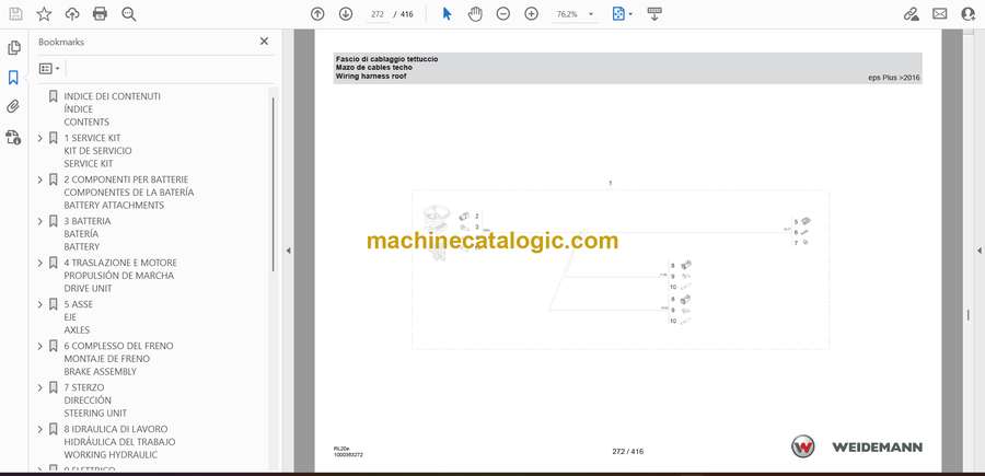 The 1160 eHOFTRAC is a compact electric wheel loader that spends its life in barns, yards, and tight indoor spaces where emissions and noise matter. This parts catalog is what I’d keep open when I’m rebuilding an axle, chasing a hydraulic leak, or swapping a damaged boom pin and I need to be sure I’m ordering the exact right bits. For example, if a loader arm cylinder starts weeping, I’d use this book to trace the cylinder assembly, confirm the correct seal kit and retaining hardware, and avoid mixing up early and later revisions.