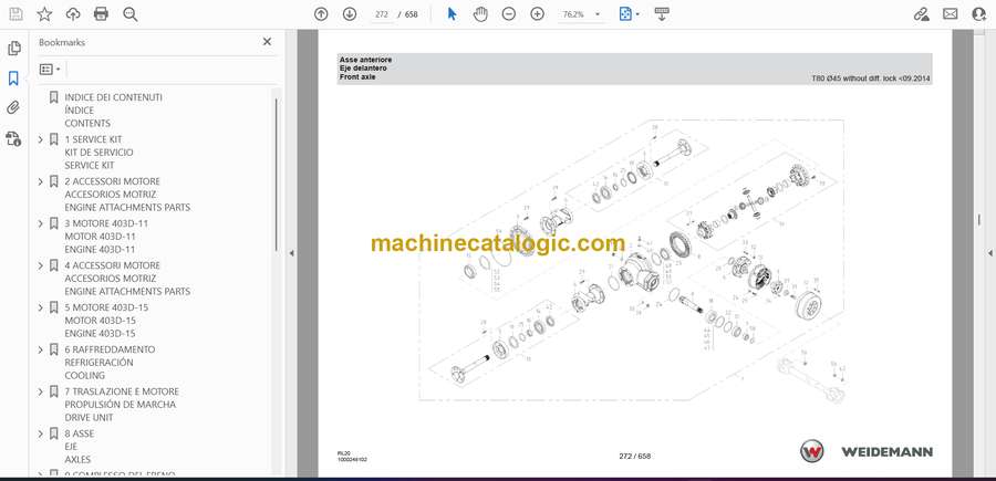 Weidemann 1160 Wheel Loader Spare Parts Catalog (RL20) (3018115 – 3056640) (it, es, en)
