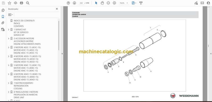 Weidemann 1230CX35 Wheel Loader Spare Parts Catalog (it, es, en)