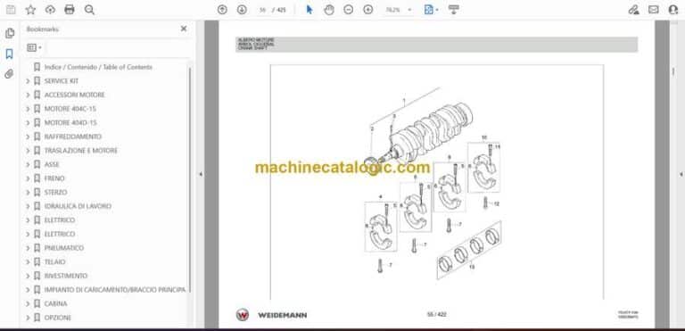 On a small Weidemann loader like the 1250CX35 with cab, you’re in and out of tight barns, yards, and material piles all day, so parts get knocked around and wear fast. This catalog is what I’d keep open when the machine is down and I need to identify exactly which pin, seal, or glass pane belongs on that specific configuration. If, for example, a lift cylinder starts weeping or a cab door hinge gets sloppy, I’d use this book to trace the assembly, confirm every bushing and O‑ring, and order the right revision so it all goes back together once, not twice.