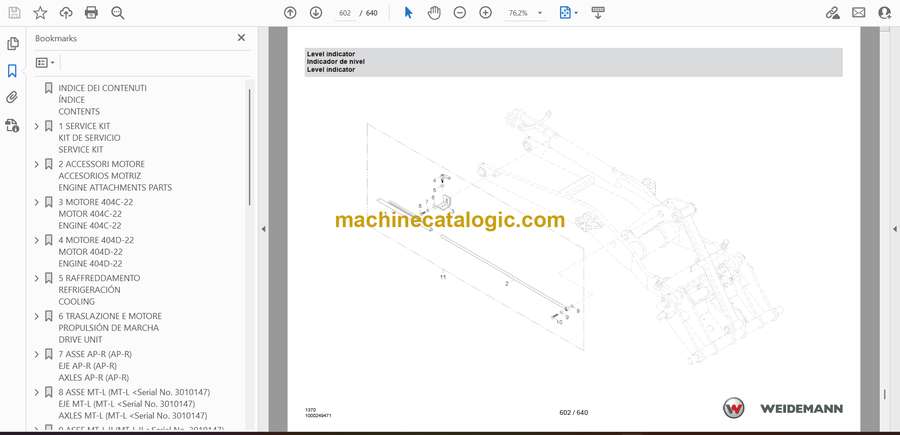 Weidemann 1370CX50 Kabi- Wheel Loader Spare Parts Catalog (1370) (it, es, en)